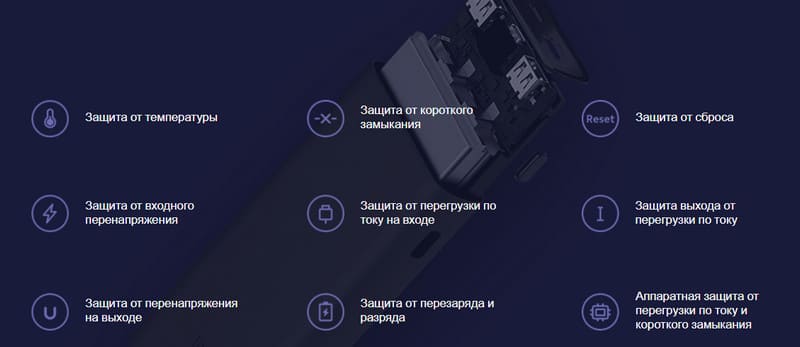 Xiaomi Power Bank Fast Charge имеет встроенную защиту от короткого замыкания, перегрева, перегрузки и других нештатных ситуаций.