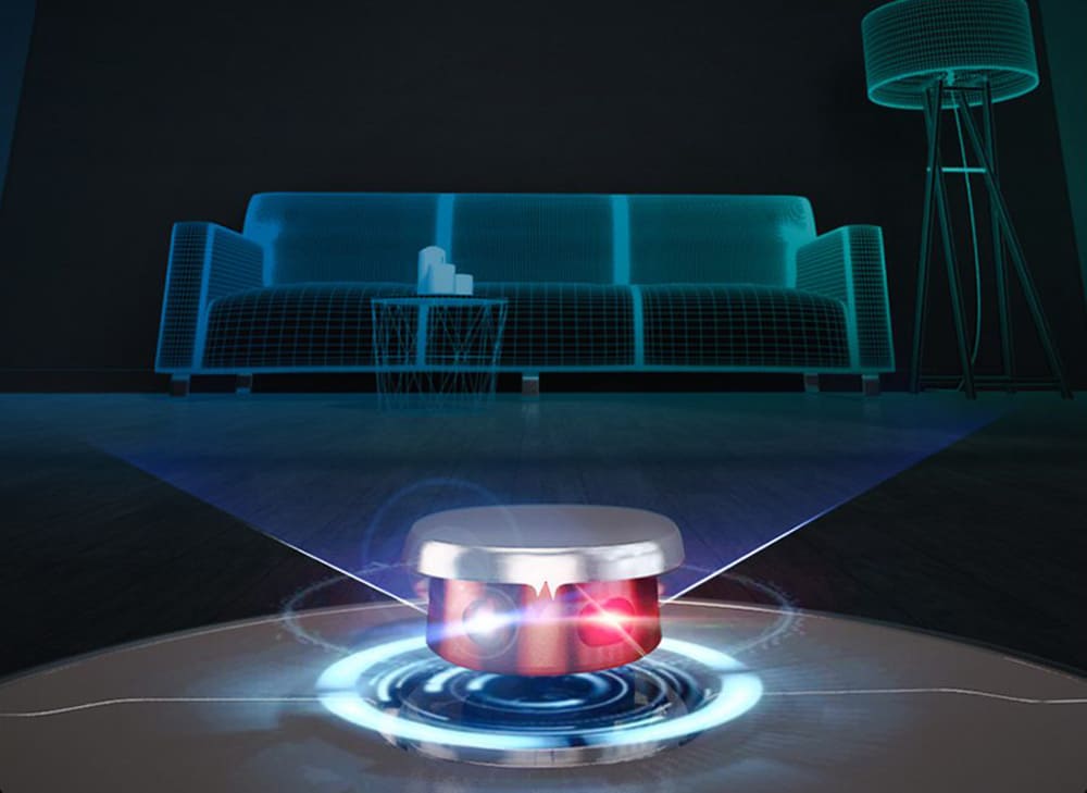 Для контроля перемещения служат не только бампер и LDS-система, но и четыре сдвоенных оптических датчика поверхности, расположенных в переднем полукруге нижней части робота. LDS-сканер позволяет строить 2D карту помещения.